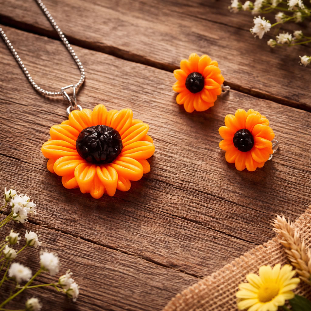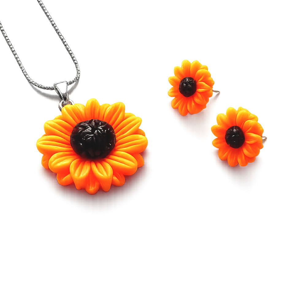 Set colier si cercei cu floarea soarelui din rasina